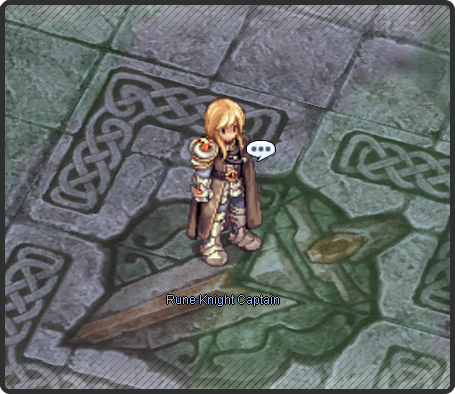 6. After successfully completing the test, speak to Rune Knight Lunarea /navi job3_rune01 90/50 again. She will congratulate you and send you to Rune Knight Captain Tigris /navi job3_rune01 80/60.
