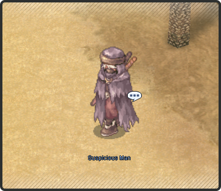 1. In the Morocc Desert, find the Suspicious Man at /navi moc_fild12 261/318 to begin the trial.
